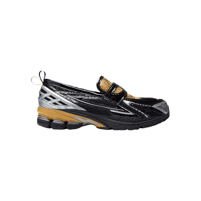 The New Balance 1906L 'Black' merges the New Balance 1906R with a classic penny loafer. Crafted from ventilated black mesh with tonal leather overlays, the upper features a traditional saddle and a bound low-cut collar. Borrowed from the 860v2, the black ACTEVA LITE midsole packs SBS pods in the heel for impact protection and a smooth ride.