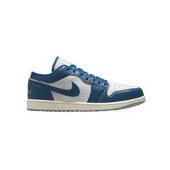 The Air Jordan 1 Low SE 'Industrial Blue' makes use of a smooth leather upper, featuring a white base with contrasting blue overlays and a color-matched Swoosh. Jumpman branding graces the tongue and sockliner, while the iconic Wings logo is stitched on the back heel. An aged off-white finish is applied to the midsole, fitted with encapsulated Air-sole cushioning and supported by a light blue rubber outsole.