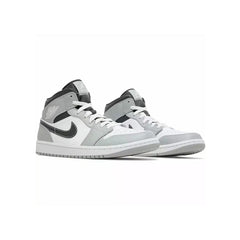 A heritage style, the Jordan 1 Mid is presented in a Light Smoke Grey, White and Anthracite colourway here. Featuring the signature Swoosh logo and a supportive ankle-length construction, this pair offers a pared-back and wearable design.