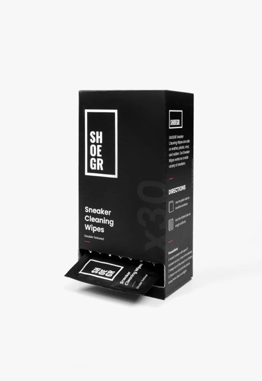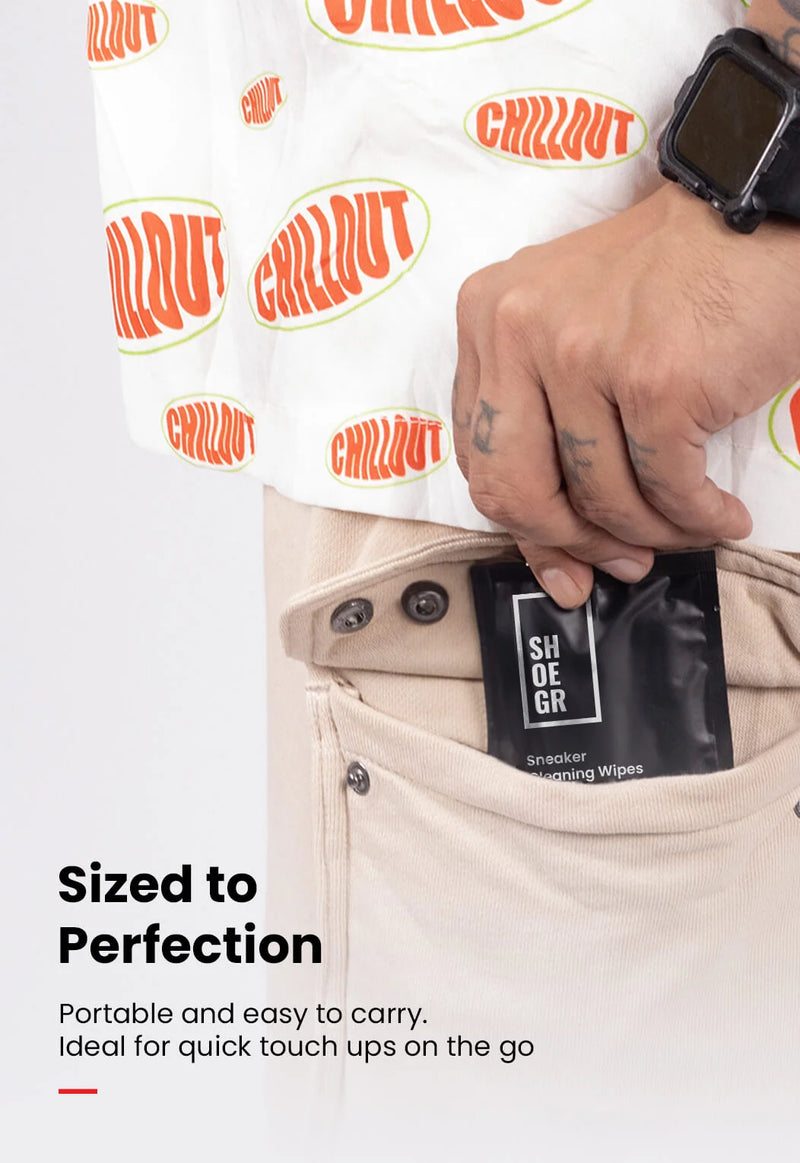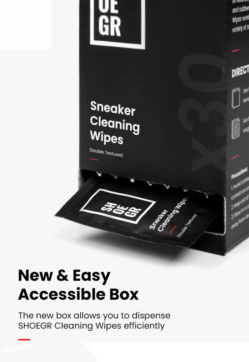 SNEAKER CLEANING WIPES- The SHOEGR dual-textured wipe is optimised to deliver a superior cleaning experience. We specifically designed our wipes to fit in the palm of your hand for on the go shoe cleaning.