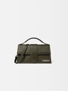 Jacquemus The Large Bambino Structured Bag In Smooth Leather Dark Khaki