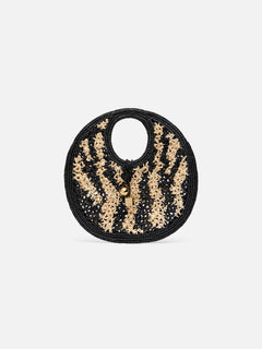 Jacquemus The Spiaggia Small Round Bag Small Raffia Circle Bag Ivory/Black